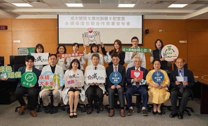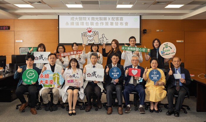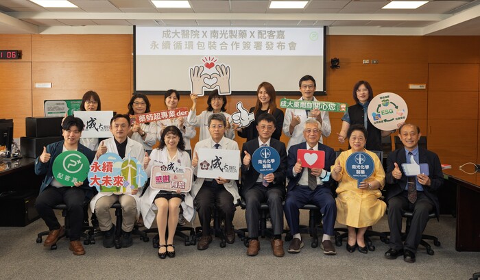 響應世界地球日、實踐醫藥業永續責任,成大醫院、南光化學製藥、與配客嘉(PackAge+)攜手合作,今(21)日於成大醫院舉辦「永續循環包裝合作簽署發布會」,分享醫藥業創新永續作為。